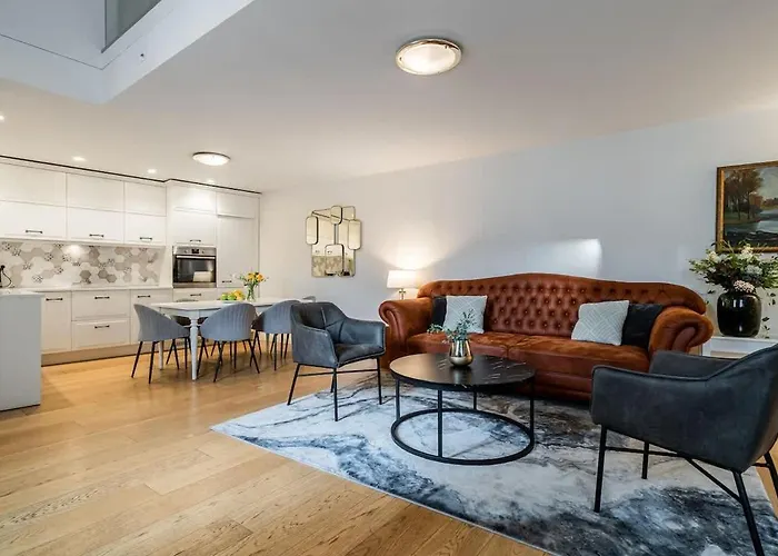 To enjoy your vacation in Vilnius, stay at the spacious 108 m² Domillion 3Bdr Huge Town Hall Luxury Apt Ac D3948 Vilnius, which is only 0.8 km from the Republic of Uzupis Information Centre and approximately a 10-minute drive from Markuciai. The apartment is situated around 15 minutes on foot from Vilnius Bus train station and just near Rotuse bus station.
